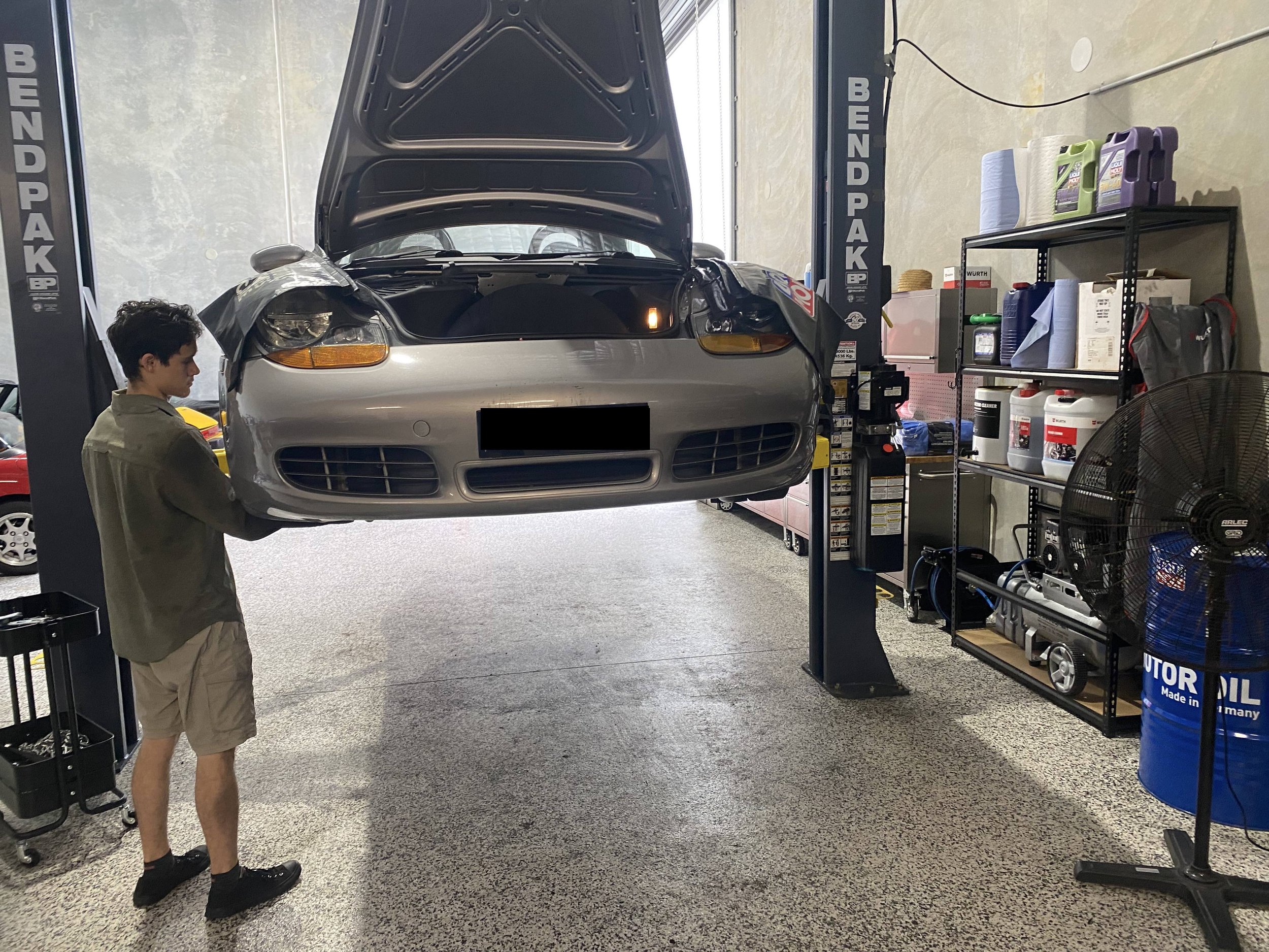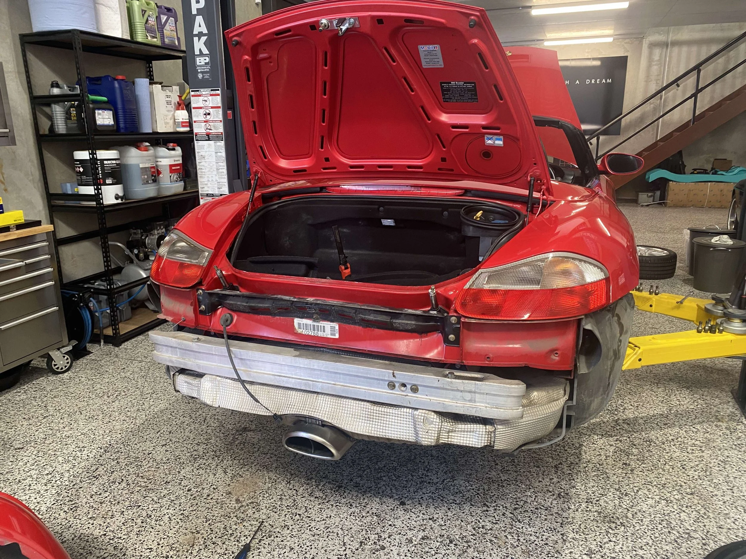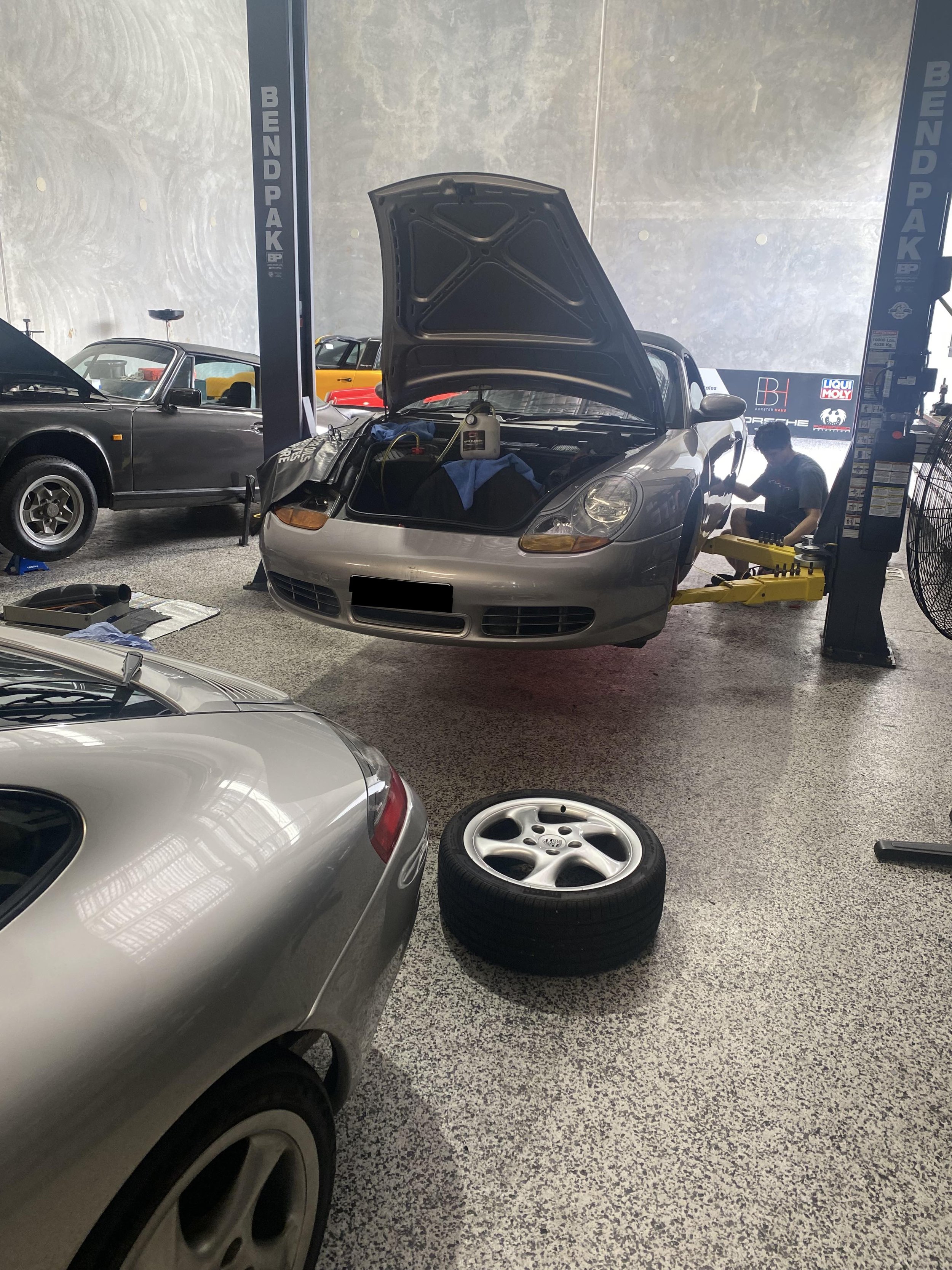 We had some challenges chasing down a bulb issue with a number plate. Ultimately, it involved removing the entire rear bar boot lining to discover a split wire. Fitted new Michelin Pilot Sport 5. A terrific tyre that works well on Boxsters. What was originally a barn find became a very good Porsche, smooth and oil-tight.