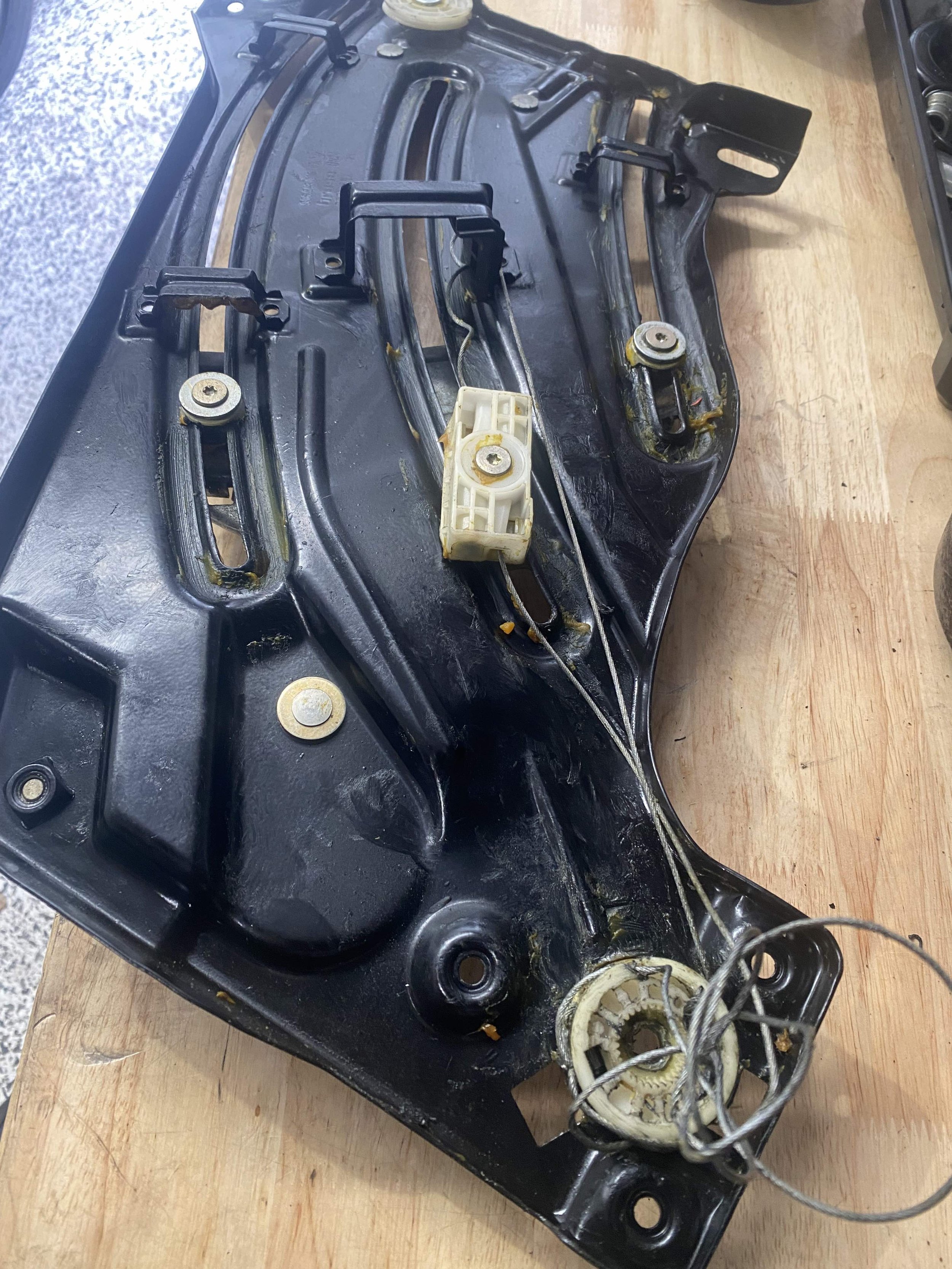 A difficult task due to the condition of the regulator gears and wire. Ultimately replaced with new components and rebuilt.