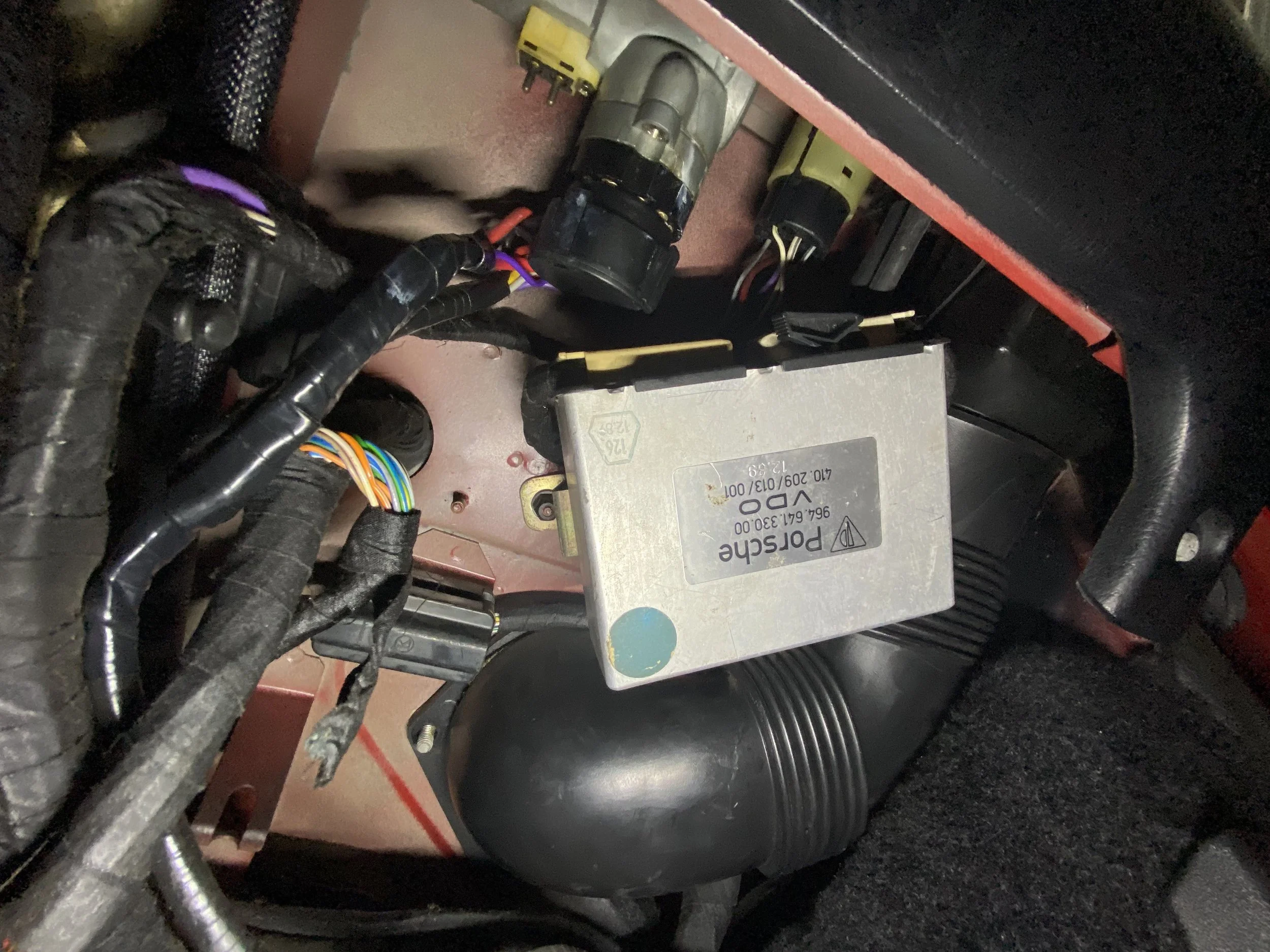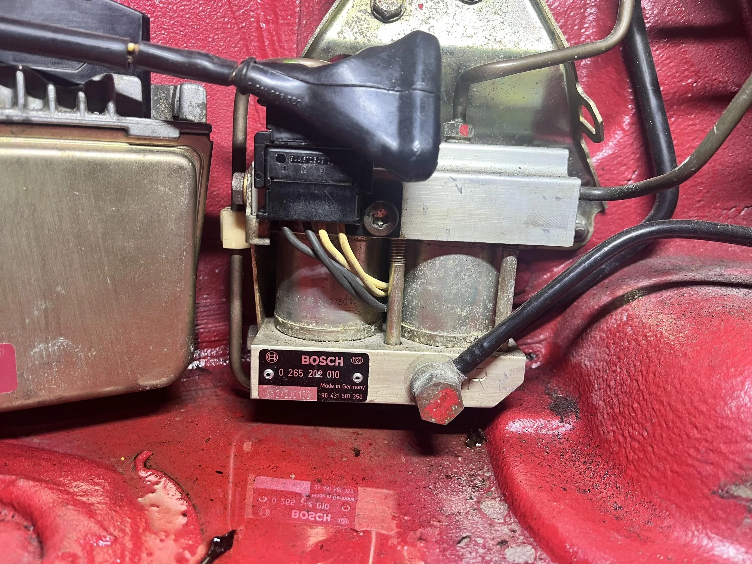 Another complicated project! A beautiful 964 C4 (All Wheel Drive), owned long-term by the same owner, has a brake issue. Another workshop initially diagnosed an accumulator problem, but we later found the real issue was a pressure line in the Diff Lock module (a Pool of brake fluid). Unfortunately, David had already bought a new accumulator (famously known as the ‘bomb') from Porsche. The C4 has 13 bleeder points; it ultimately replaced the bomb, as we were in the area, David could not return the part. Why not just replace it?