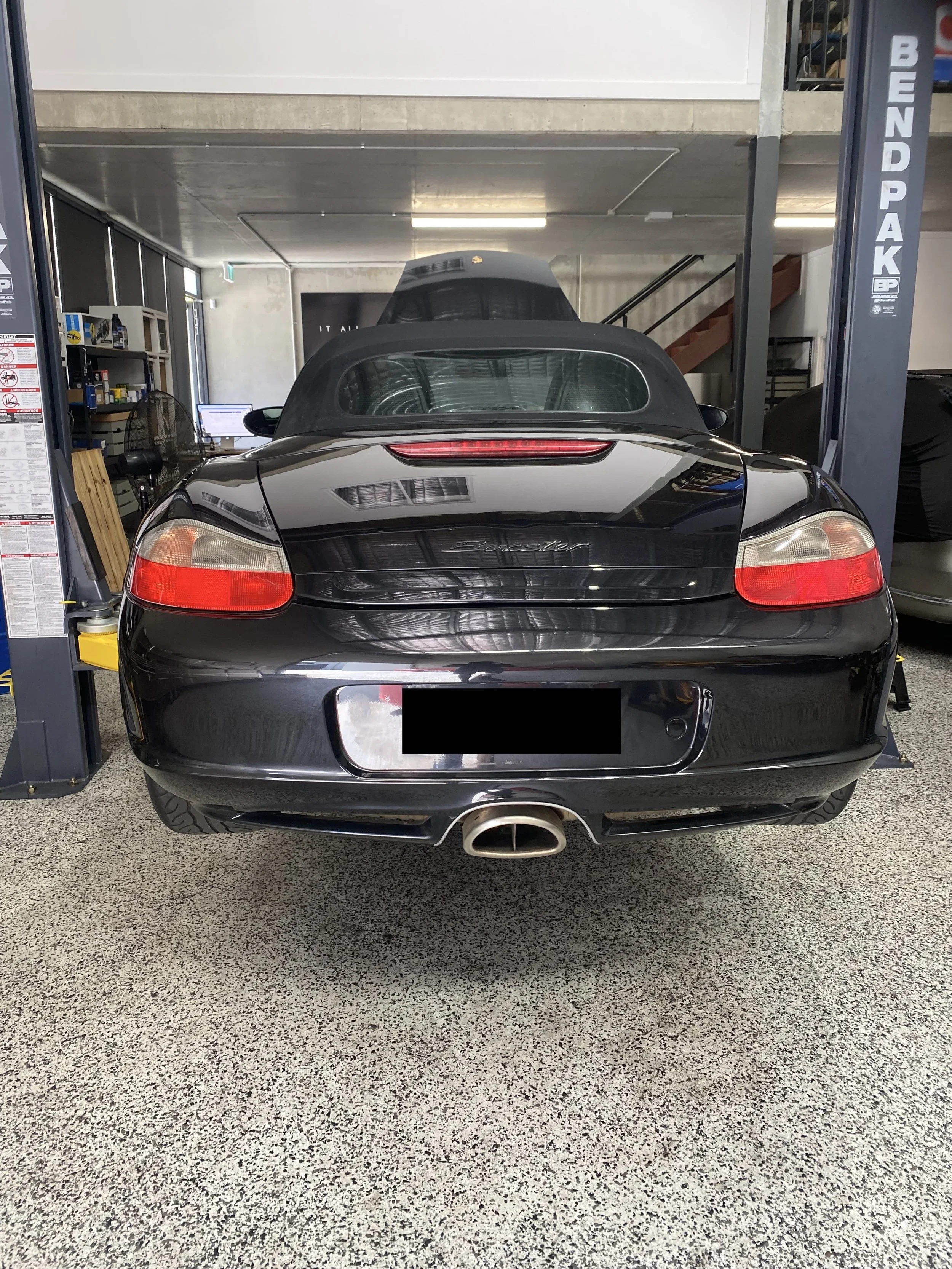 A NZ import. Lovely condition. The car was sold while at Boxster Haus. The brief went ahead. Oil analysis, bore inspection, front bump stops/boots, wheel alignment, and, for the new owner, Simon, front/rear discs, pads, anti-rattle springs, and sensors. A super clean example, grossly undervalued Porsche. Our choice of discs is Zimmermann or Brembo. For us, front pads have to be Textar.