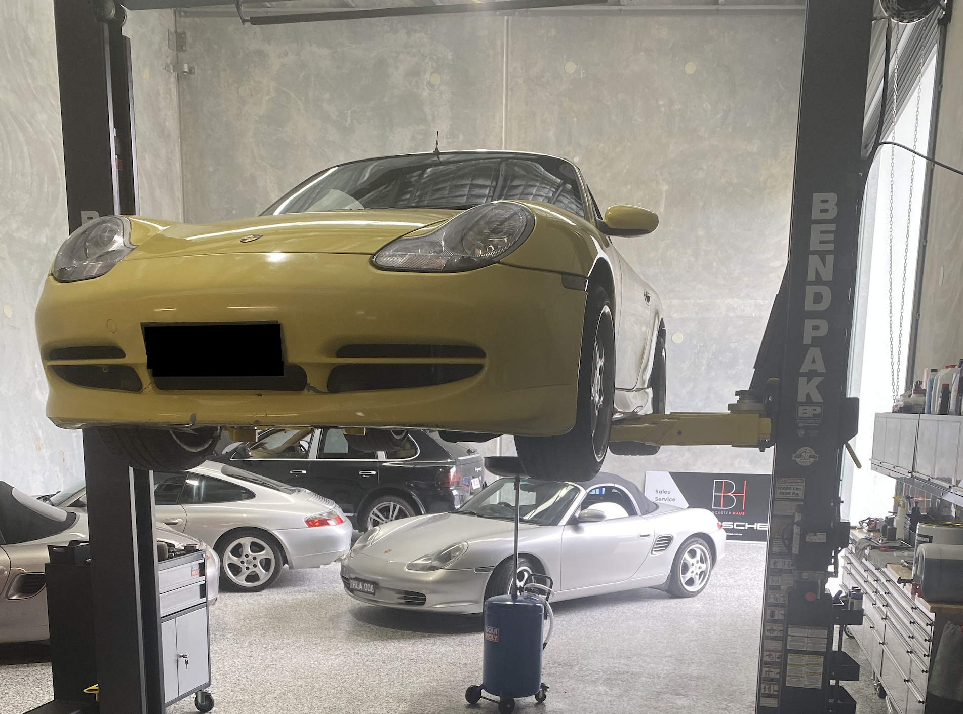 Kieren previously asked Julian if he could take him for a drive in his well-sorted 986.2 Boxster. Julian had fitted Bilsteins, KYB heavy-duty springs (standard height), OE-matched top mounts, and bearings. A very tight and balanced example. We have a favourite testing ground (Curves, braking zones, got the lot) very close to our workshop. That drive was enough to show Kieren the remarkable handling capabilities of Boxsters when sorted. He wanted the same! After all tasks were completed, he picked up his Porsche. After a quick run on the same testing ground, Kieren stopped and sent a text, ‘WOW! ’ Most appreciated! Of course, we love such messages! It was a serious transformation. The Boxster handles and steers as it should. Looks fantastic, a real Porsche!